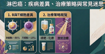 新光醫院腫瘤治療科 季懋欣醫師 淋巴癌:疾病差異、治療策略與常見迷思 最近媒體的報導讓許多人開始關心淋巴癌。我也接受了幾次媒體訪問。淋巴癌其實並不是單一疾病,而是來自免疫系統淋巴細胞的一整群腫瘤。最基本的分類可分為兩大類: 依照細胞來源區分,淋巴癌主要來自 B 細胞與 T 細胞這兩種免疫細胞。不同細胞來源的淋巴癌,其生物行為、治療策略以及預後都可能有明顯差異。。 B 細胞與 T 細胞淋巴癌的差異 在所有淋巴癌中,大約 80–85% 來自 B 細胞,而 T 細胞或…